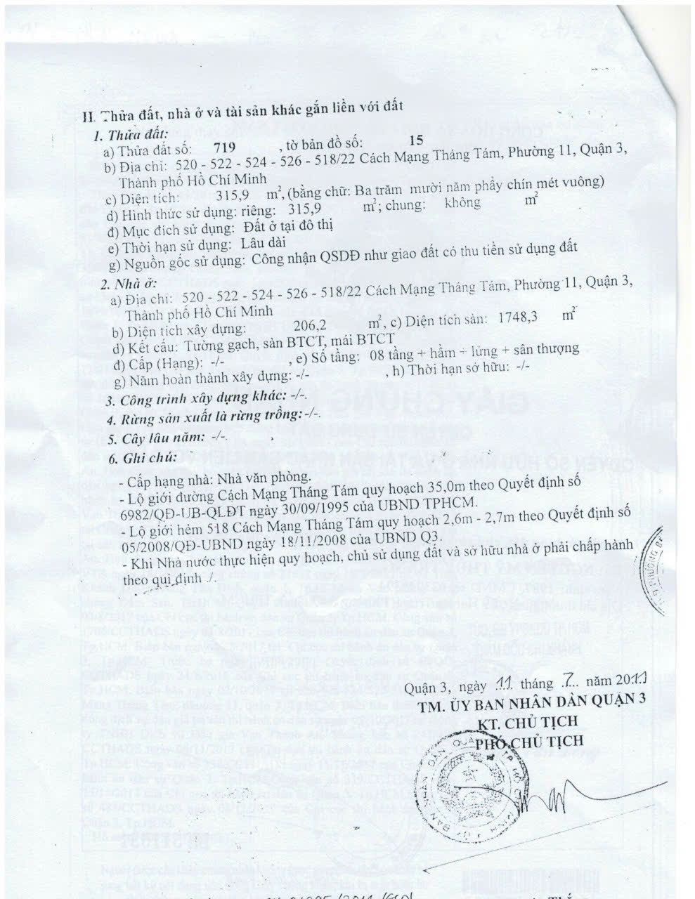 520–522–524–526–518/22 Cách Mạng Tháng 8, Phường 11, Quận 3, TP.HCM. Tài sản nằm trên trục giao thông xương sống kết nối Quận 1 – Quận 3 – Quận 10 – Tân Bình, vị trí cực kỳ phù hợp cho văn phòng, trung tâm đào tạo, ngân hàng và doanh nghiệp lớn.